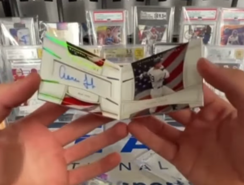 In a recent live break, collectors tuned in to OTIAConsignments’ Whatnot channel witnessed something truly special as an Aaron Judge booklet autograph card was pulled from a Galaxy